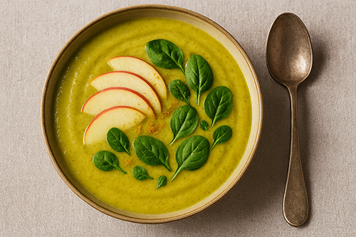 Spiced parsnip spinach soup with apple and turmeric