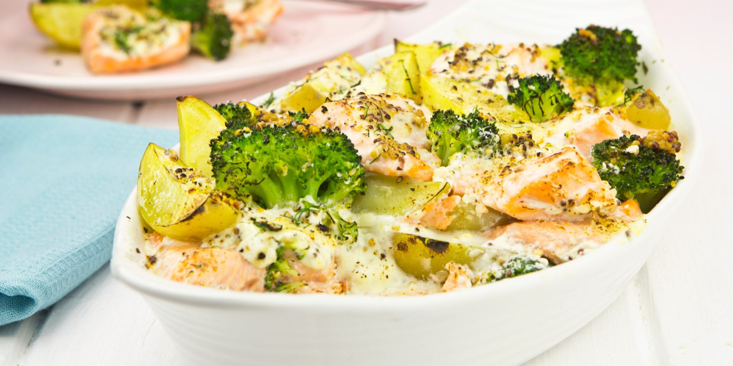 Salmon, broccoli and potato bake