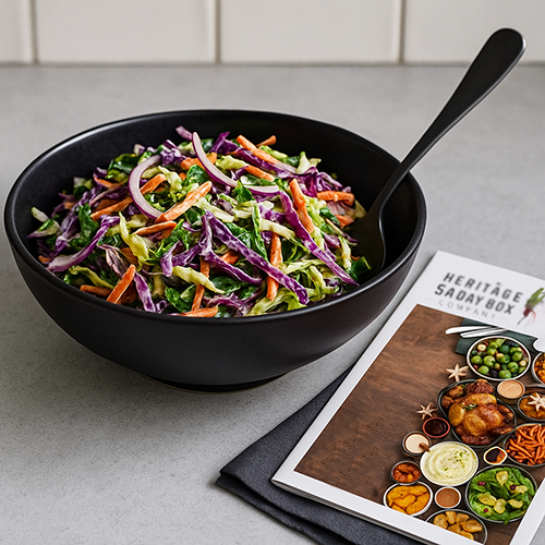 A delicious slaw that can be eaten as a side or part of a winter salad. Use the January kind cabbage in place of the red cabbage