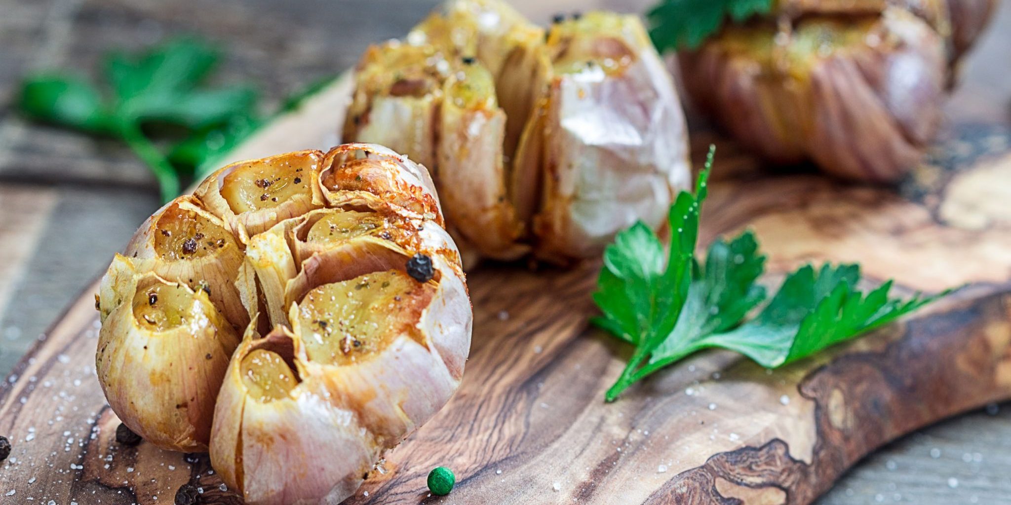 There’s nothing tastier on a cooler evening than a roast garlic bulb and some freshly baked bread. Make extra special by drizzling with olive oil and honey before you pop it in the oven. Perfect for serving as a starter, lay the roast garlic/s on a board and then let your guests grab a bulb and squeeze out the contents onto their fresh bread.