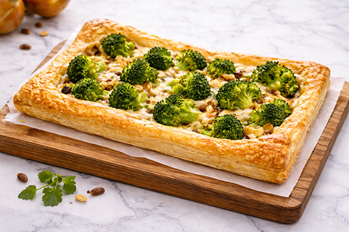 Broccoli, cheese and onion puff slice