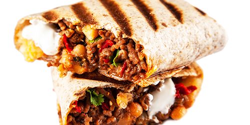 For the guacamole, mix the tomatoes with the onion, coriander, lime juice and some seasoning, then mash to make a chunky guacamole. To serve, warm the tortillas, roughly spread over some of the guacamole, add a generous layer of rice, then the chilli, natural yogurt, lime juice and grated cheddar, if you like. Wrap everything up tight and halve through the middle and serve.
