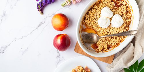 This crumble is the perfect dessert to have after your Sunday lunch. If you’re not a fan of nectarines, you can swap them out and add in peaches, apricots, plums or any other fruit to your liking. Now all you have to decide is whether to serve it with custard, cream, ice cream or all 3!