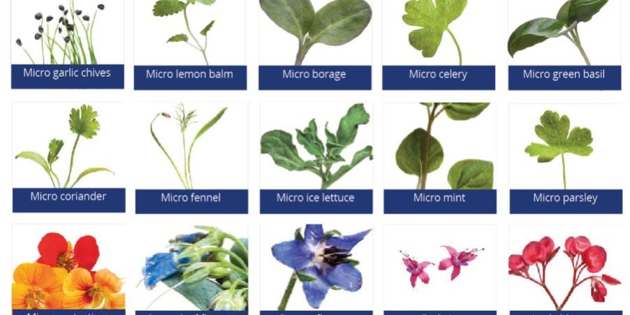 Micro Garlic Chives | Micro Lemon Balm | Micro Red Basil | Micro Celery | Micro Coriander | Micro Fennel | Micro Green Basil | Micro Thai Basil | Micro Lovage | Micro Mint | Micro Mizuna | Micro Red Mustard Frills | Micro Pink Radish | Micro Pea Shoots | Micro Rocket | Micro Tarragon | Micro Thyme | Micro Watercress | Nasturtium Leaves | Borage Leaves | Cardamon Leaves | Lemon Verbena | Blue Pepe Nasturtium Leaves | Micro Parsley | Popcorn Shoots | Micro Red Amaranth | Micro Red Vein Sorrel | Micro Ruby Chard | Micro Sweet Cicely | Micro Wasabi Leaves | Purple Shiso Leaves | Tendril Pea Shoots