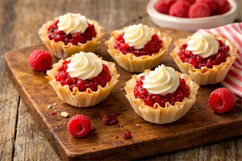 These fruity, flaky tartlets filled with raspberries and topped with lemon-tinged cream cheese are a sweet ending to a delicious valentines meal.